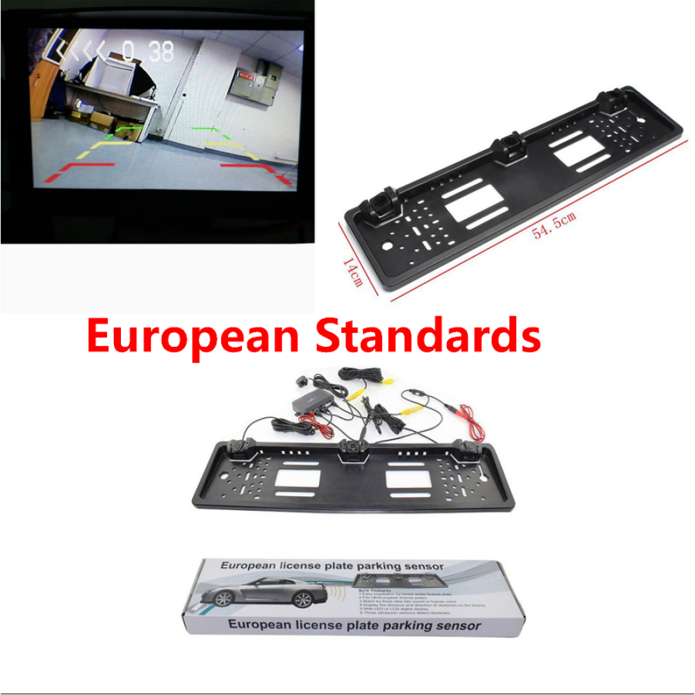 Κάμερα HD οπισθοπορείας αυτοκίνητου με Ευρωπαϊκό πλαίσιο πινακίδας της ΕΕ με 4 LED Light Night Vision, 2 αισθητηρες παρκαρίσματος & βομβητή 65 Ντεσιμπέλ.