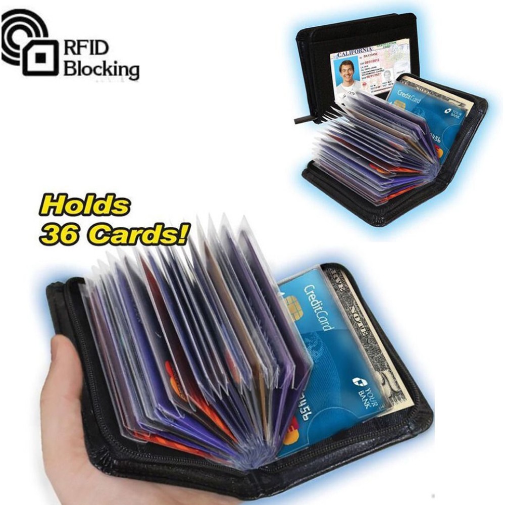 Δερμάτινο πορτοφόλι με φερμουάρ ασφαλείας RFID για 36 κάρτες