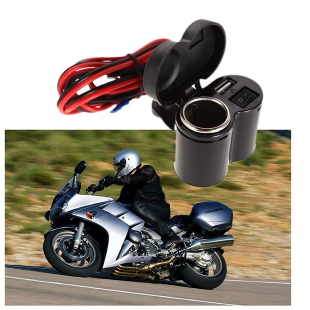 1 × Αδιάβροχος φορτιστής μοτοσυκλέτας με μονή θύρα USB και υποδοχή αναπτήρα τσιγάρου