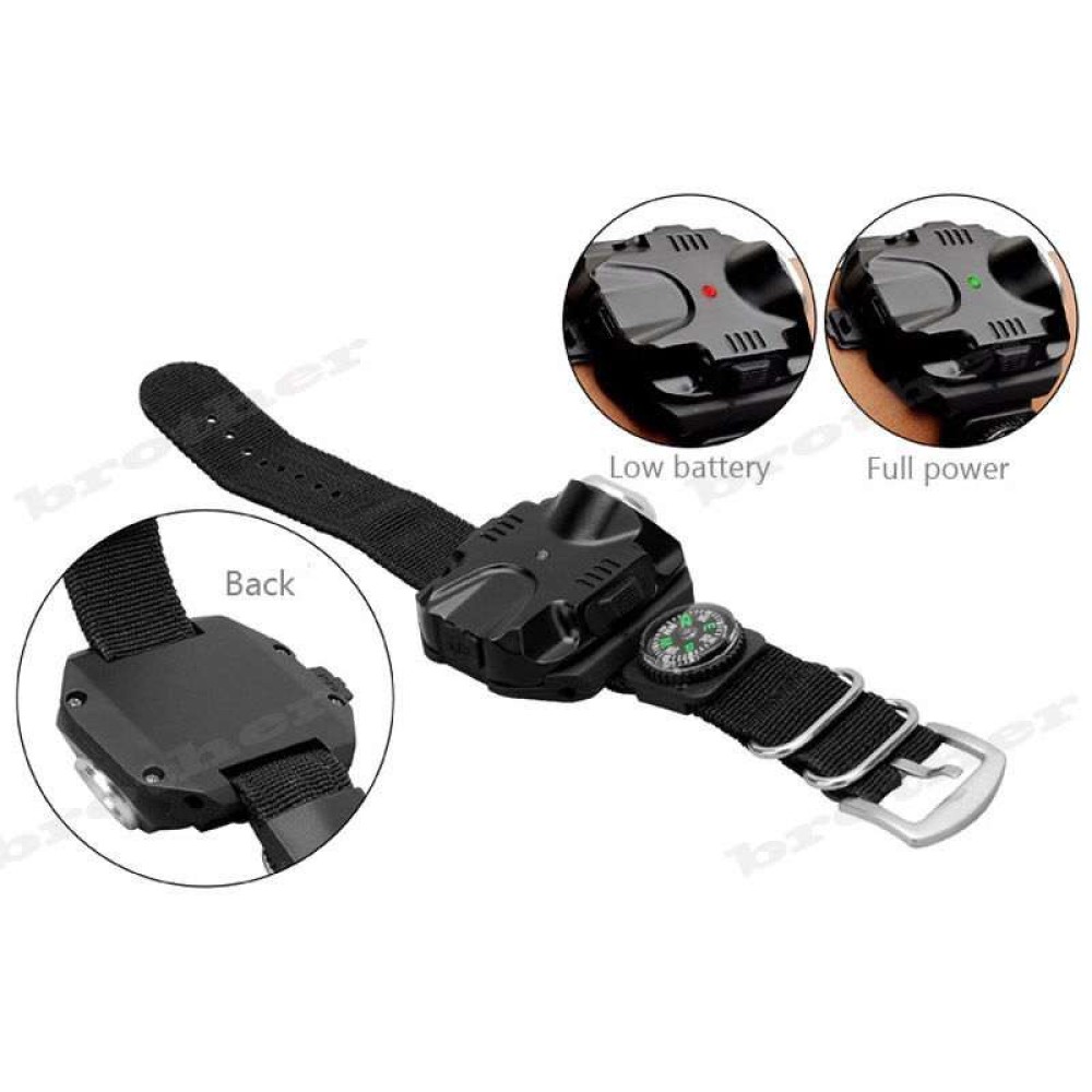 Unisex καρπό-βραχιόλι φακός Led λειτουργίας 5 τρόποι + Πυξίδα