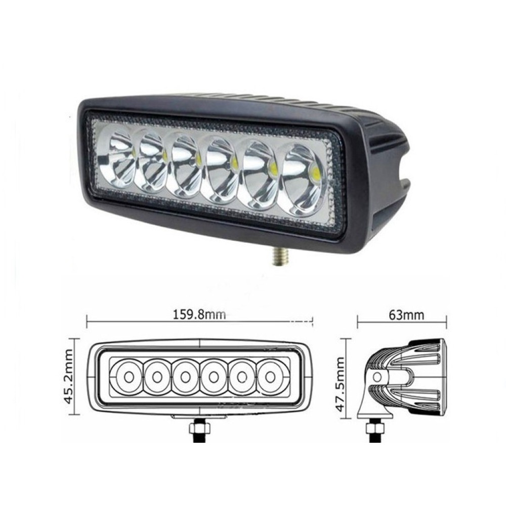 Λεπτομέρειες προϊόντος: LED Ισχύς: 18W. Τάση λειτουργίας: λειτουργούν με τάση 10-30V DC. Αδιάβροχο ποσοστό: IP 67. 6τμχ x 3W υψηλής έντασης LED.Χρώμα: Μαύρο. Θερμοκρασία χρώματος: 6500K. Υλικό: Diecast περίβλημα αλουμινίου. υλικό του φακού: PMMA. Στήριγμα τοποθέτησης: από ανοξείδωτο χάλυβα. Οπτική Beam: 25 βαθμός (ΣΠΟΤ). 30.000 ώρες παραπάνω χρόνο ζωής. Μέγεθος: 160 * 63 * 45 χιλιοστά
